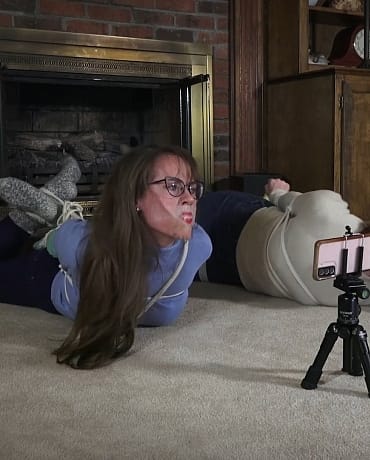 They’re surprised and gag talking tons but the chat LOVES it! Madalynn tries picking her tape off, but her hands have been covered in slouch socks that can’t come off. Mads tries another button on the controller and POOF! Both women are hogtied with their thick socked feet in the air, gag talking and wiggling around wondering how they’re going to turn off the stream, and how they’re ever going to get free!