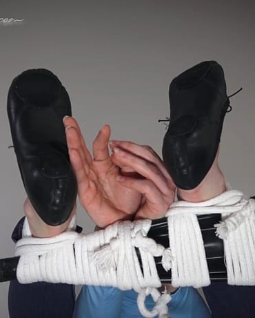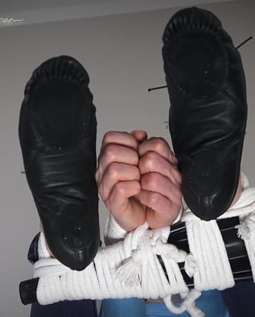 She rubs her ballet slippers intermittently with her fingers and flexes the leather for your entertainment. Madalynn is bound uncomfortably making little “Mmmppphh” and groaning sounds while you enjoy her bound in this predicament.