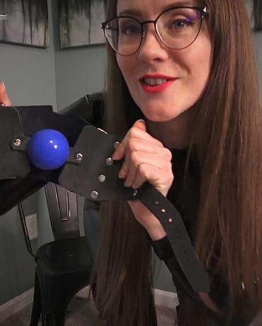Madalynn pulls out the panel gag and puts head harness gag in her hand to show you; She begins humiliating you about the whole situation and how fucked you really are. She pops that headharness gag in your mouth and secures it in place. The leather straps tightened around your head and you can barely make a sound. Now, round #3 beings!
