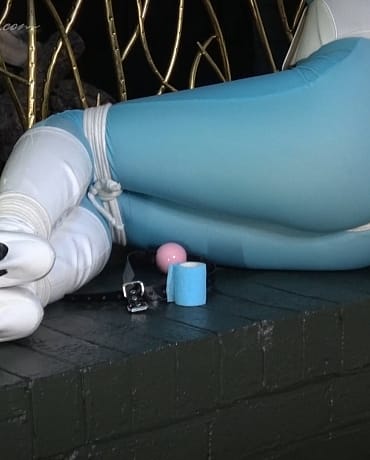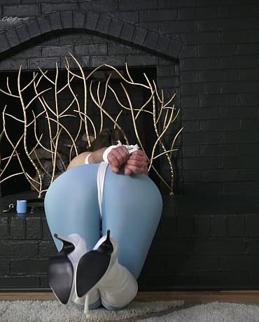 Madalynn is wearing a light blue tight spandex bodysuit, and puts on her thick white belt and patent knee high white boots after she gags herself with a light pink ball gag. She rubs her hands all over the slick tight fabric and teases you with those eyes of hers while trying to articulate through the ballgag. She wants you to tie her up! And who are you to deny her what she asks for. You tie the ropes at her ankles, above the knee, give her a nice tight crotchrope that pulls her spandex nice and snug and you watch her wiggle and get situated as she changes her gag from the ball gag to mouth stuffing with vet wrap. But before she does that she teases you, asking for MORE rope! You love watching her stuff her mouth and wrap the blue vet wrap around her head and you gladly grab more rope and give her what she wants! You add wrist, and elbow rope and let her shimmy around on the fireplace hearth, wiggling her ass at you, before you decide she needs to let down her hair and relax for a while on the floor in a nice tight hogtie!