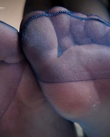Wrinkled soles, toe wiggling, and that sheer shiny blue tights fabric molded and stretched across is absolute perfection!