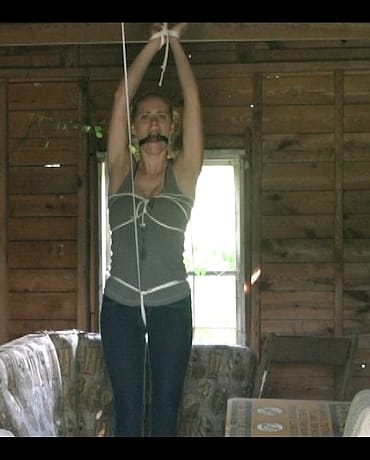 Strung up in a dark and creepy shack in the middle of the woods, Madalynn drools all over herself and tries to find some comfort in the ropes that are holding her.