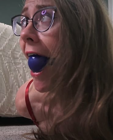 Legs tightly bound at the ankles, above and below the knee and pulled into a hogtie, Madalynn is gagged with a blue ballgag and is doing a fine job drooling all over. She’s in a red lace bra, and bright red opaque tights that cling like a second skin to her shapely little body. Her hair gets in the way and she rolls back and forth talking to you from behind the gag. After a bit she convinces you to ungag her as you can tell she’s not going to be a problem anymore. Madalynn, ungagged, talks to you and starts flirting to your surprise. She bats her eyes and talks all about her situation and how much you must like seeing her opaque tights covered soles in the air while she’s on her belly. You’re even more delighted when she asks you to get some more rope so you 2 can spend more time together!