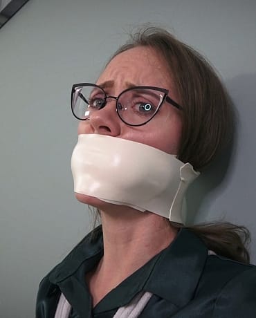 Madalynn threatens to never shut up and that’s when you decide that you can fix that! A pair of your mistress’s panties you keep in you desk drawer and a nice tight, wrap around, microfoam tape gag seals it all in.