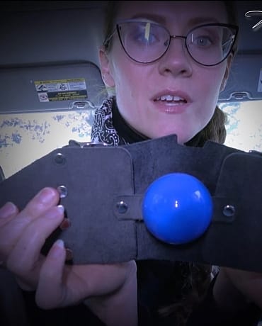 You wake up, groggy and confused, in the backseat of a car. Your captor, the beautiful Madalynn, seems comforting, yet terrifying. She explains that she's been watching you for a very long time, studying your habits and your schedule. She knows everything about you, and she's going to use that against you and make you her gagged slave. She pulls out a panel gag with a blue ball and straps it to your head. She's taking you very far away to a place that is very well equipped to make you the perfect slave, forever. She can't have you seeing where you're headed, so she shoves a scented rag in your face which makes you very sleepy. You awaken with Madalynn in front of you. You're tied down in a latex outfit, complete with boots and mitts to keep you from escaping. Terrified, you hinge on her every word, hoping for a way out of this, but there doesn't seem to be one. For now, you are useless, you are nothing, and she is going to break you down piece by piece and build you back up into her perfect slave. Oh, stop you're crying you sound pathetic. This is the way things are now and you're going to have to accept it. She takes your gag off, and you have a moment of relief, quickly followed by her replacing it with an even bigger panel gag that straps around your head, nice and tight. You don't have to fight it - she can give you everything you've ever wanted and more if you just accept your new fate. She removes your handcuffs in an effort to make you struggle less and trust her more. She then takes unties the ropes to move you to the floor but quickly replaces them with tight leather straps and locks you in an arm binder to make sure you stay exactly where she wants you. She uses a little chain to hogtie your feet to the gag on your head. To finish the job, she tapes a vibrator to you and orders you to chant "Ms. Madalynn is in control. She owns me." while your cock is milked for every last drop. Now she owns every piece of you which is only the first step in her journey to make you the most perfect slave.