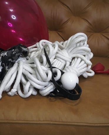 Once Madalynn wraps up the phone call, she lets down her hair and begins teasing you with the balloons, getting in your face and then she begins telling you all about her bondage plans for you. Unraveling a coil of rope and cinching you even more secure. Then adding nipple clamps, and then a ballgag because you’re making far too much noise for her liking.