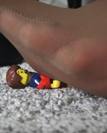 Madalynn is on the phone with her friend when she walks into her apartment, she gets the news that there’s a man that’s been shrunk and he’s some how escaped his confines. As Madalynn takes a seat on her bed she notices that her clothes pile is moving and gets off the phone immediately. She goes to investigate, and as she moves each garment she’s surprised when she finds it’s a tiny human in her clothes pile. She lunges to catch them, and she’s fascinated by her find. That her tiny ward looks VERY familiar. That it is indeed the guy from the news on TV! How did he teleport into her bedroom?! But that’s not important right now, Madalynn is feeling frisky. She has her very own tiny! Something she’s always dreamed of… She picks him up and takes him over to the bed and promises that she only wants to have a little bit of fun. She holds him by her long pantyhose covered legs and guides him down by her huge high heeled feet. Giving this tiny a tour of her assets. Madalynn grabs a very thin roll of tape and binds the little shrimps arms so he can’t make a fast get away. Once she’s done binding him, she brings him up to her mouth and shows her teeth as she uses them to sever the tape. Madalynn whispers in his ear and then lays him on the floor in between her high heels. She unbuckles one of them and frees a pantyhose foot, and teases it overtop of the little man. Delicately applying pressure, and being sure not to harm him. She wiggles her nylon covered feet all over his body, striking both fear and pleasure into his tiny frame. She unbuckles the other leather T strap heel and puts him under that foot. Then both feet at the same time. After some tender sole play, Madalynn decides it’s time to relax and ends up taping the tiny to the bottom of her pantyhose feet while she has both feet propped up on the bed and tries to figure out what to order for dinner.