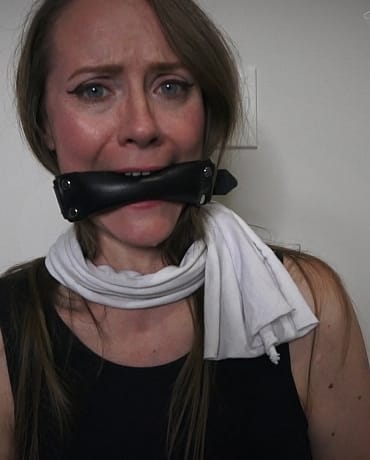 Next thing Mrs. Raye knows, she’s tied and gagged with a very tight and thing cleave gag wedged in her mouth.