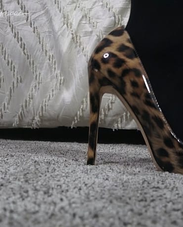 Madalynn’s just gotten home from a stressful day at the office and dealing with her Boss, whom she seems to be a little lusty for. She sits on her bed and recaps some events that eventually turn into fantasy, as she crosses and uncrosses her black pantyhose legs and begins to unbutton her blue satin blouse.
