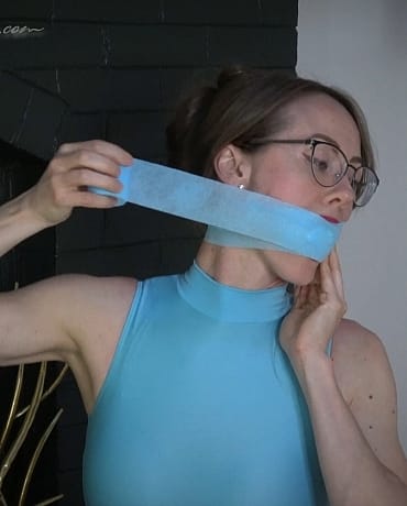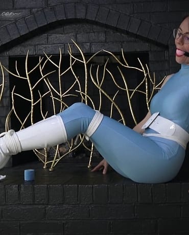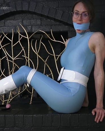 Madalynn is wearing a light blue tight spandex bodysuit, and puts on her thick white belt and patent knee high white boots after she gags herself with a light pink ball gag. She rubs her hands all over the slick tight fabric and teases you with those eyes of hers while trying to articulate through the ballgag. She wants you to tie her up! And who are you to deny her what she asks for. You tie the ropes at her ankles, above the knee, give her a nice tight crotchrope that pulls her spandex nice and snug and you watch her wiggle and get situated as she changes her gag from the ball gag to mouth stuffing with vet wrap. But before she does that she teases you, asking for MORE rope! You love watching her stuff her mouth and wrap the blue vet wrap around her head and you gladly grab more rope and give her what she wants! You add wrist, and elbow rope and let her shimmy around on the fireplace hearth, wiggling her ass at you, before you decide she needs to let down her hair and relax for a while on the floor in a nice tight hogtie!