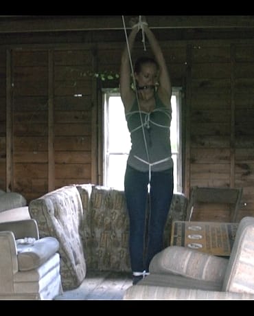 Strung up in a dark and creepy shack in the middle of the woods, Madalynn drools all over herself and tries to find some comfort in the ropes that are holding her.
