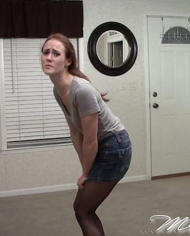 Madalynn is a young Detective that's been caught by 2 bad guys. They try to get the info out of her in by filling her up with water in hopes she spews the info before she pisses all over her black pantyhose and jean skirt. She manages to free herself and as she makes her way to the door, the overwhelming desire to tinkle seizes her and she dances in place, she makes the decision to run to the door but is caught and she wrestles her captive, till his buddy can come and assist him in her submission.