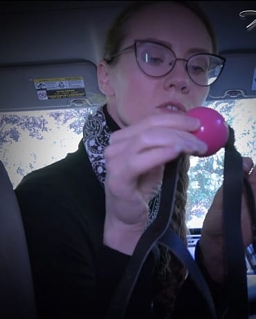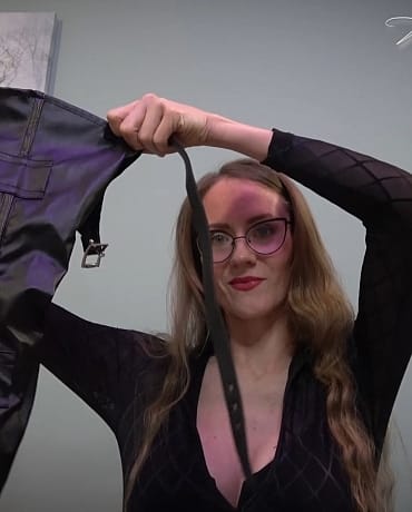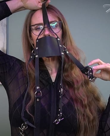 You wake up, groggy and confused, in the backseat of a car. Your captor, the beautiful Madalynn, seems comforting, yet terrifying. She explains that she's been watching you for a very long time, studying your habits and your schedule. She knows everything about you, and she's going to use that against you and make you her gagged slave. She pulls out a panel gag with a blue ball and straps it to your head. She's taking you very far away to a place that is very well equipped to make you the perfect slave, forever. She can't have you seeing where you're headed, so she shoves a scented rag in your face which makes you very sleepy. You awaken with Madalynn in front of you. You're tied down in a latex outfit, complete with boots and mitts to keep you from escaping. Terrified, you hinge on her every word, hoping for a way out of this, but there doesn't seem to be one. For now, you are useless, you are nothing, and she is going to break you down piece by piece and build you back up into her perfect slave. Oh, stop you're crying you sound pathetic. This is the way things are now and you're going to have to accept it. She takes your gag off, and you have a moment of relief, quickly followed by her replacing it with an even bigger panel gag that straps around your head, nice and tight. You don't have to fight it - she can give you everything you've ever wanted and more if you just accept your new fate. She removes your handcuffs in an effort to make you struggle less and trust her more. She then takes unties the ropes to move you to the floor but quickly replaces them with tight leather straps and locks you in an arm binder to make sure you stay exactly where she wants you. She uses a little chain to hogtie your feet to the gag on your head. To finish the job, she tapes a vibrator to you and orders you to chant "Ms. Madalynn is in control. She owns me." while your cock is milked for every last drop. Now she owns every piece of you which is only the first step in her journey to make you the most perfect slave.