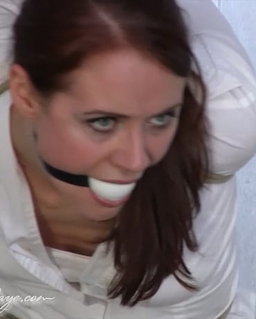 Roped up in a very strict strappado, my heels tip tapping on the concrete as I struggle to keep balance. Drool seeping out of my gagged mouth...