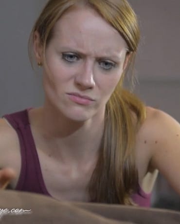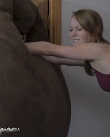 Madalynn is reorganizing and moving furniture at a friends house, she's struggling to get the very large and heavy bean bag into the next room. She struggles, lifts, pushes and tries with all of her might to get the big brown blob in it's new spot!