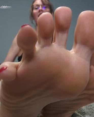 In the bedroom, leashed at the foot of the bed, on the floor like the submissive husband bitch that you are. You get to stare at my sexy pantyhose covered feet, although they have runs in them, you couldn’t be happier right where you are! Your job is to exist, while I wiggle my feet and ignore you, lets see how good of a job you do, just waiting for me to remember that you are in the room with me. Off come my pantyhose and I can tell you’re getting excited, as you shift in your spot. Those milky white, bare soles right in your face. I guess you’ve earned the opportunity to stroke yourself stupid for my wrinkled soles, come on, honey, get it over with because you know you’re going to be tasked with lapping that spunk off my soles! Coat them with your huge load and prepare to get that tongue ready to clean them off!