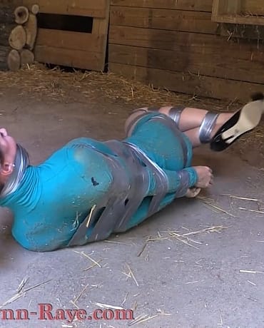 Madalynn is dragged out of the car and into a terribly dirty barn. A place that a woman of means would never be caught in. She's ungagged and regagged with panties, that are tightly taped into her mouth. She can hardly make a sound and more and more tape is added all around her body. She can hardly move and cannot believe she is being treated this way.